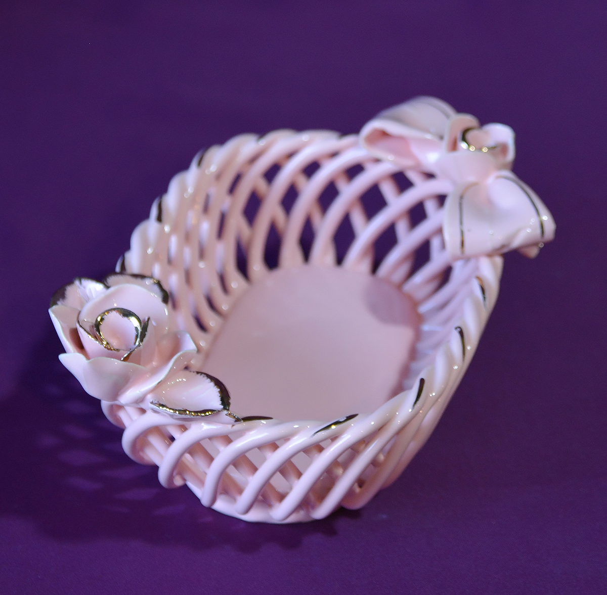 Конфетница Боярочка розовая (декор заменителем золота)