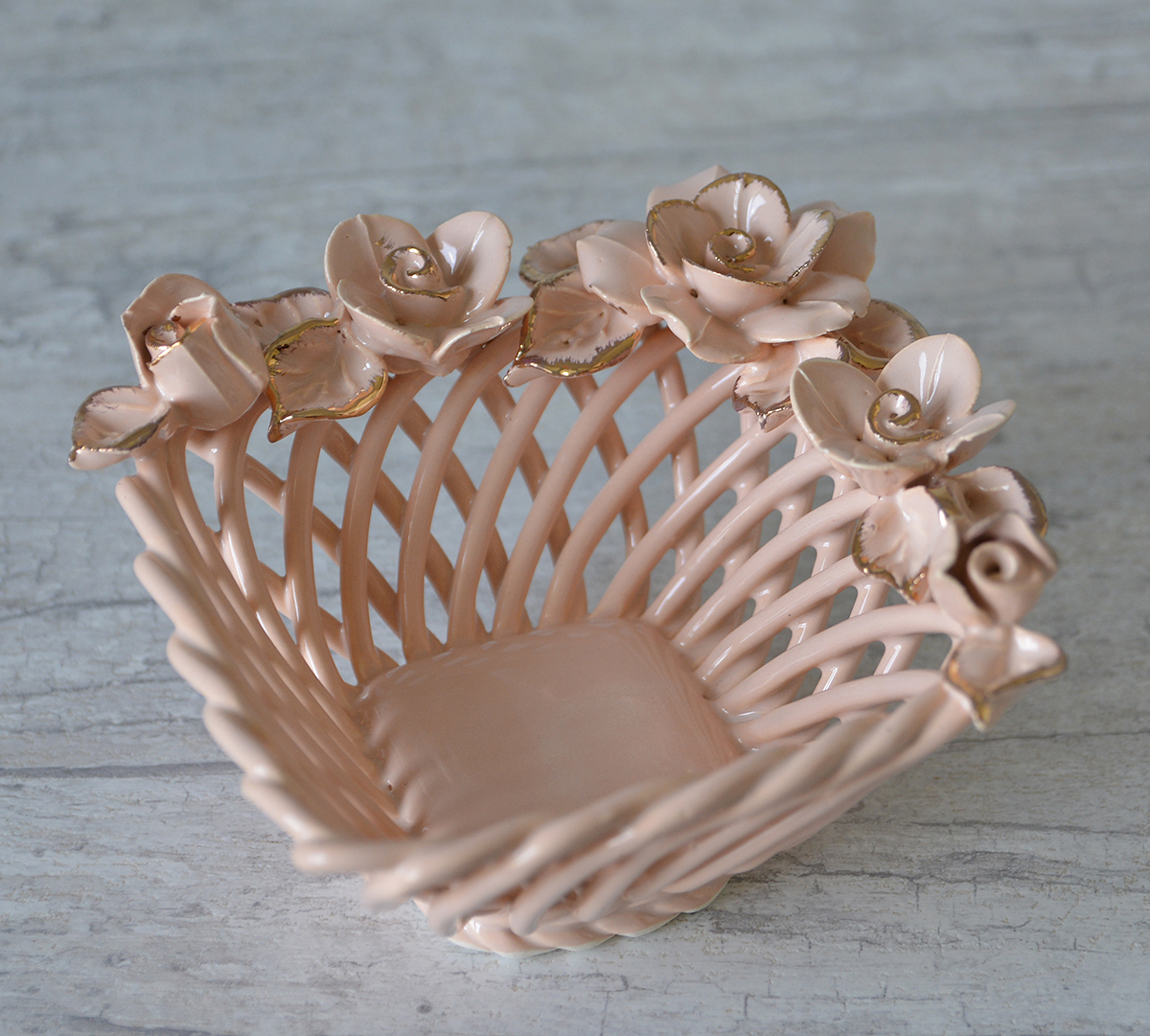 Конфетница Кнопа кремовая (декор заменителем золота)