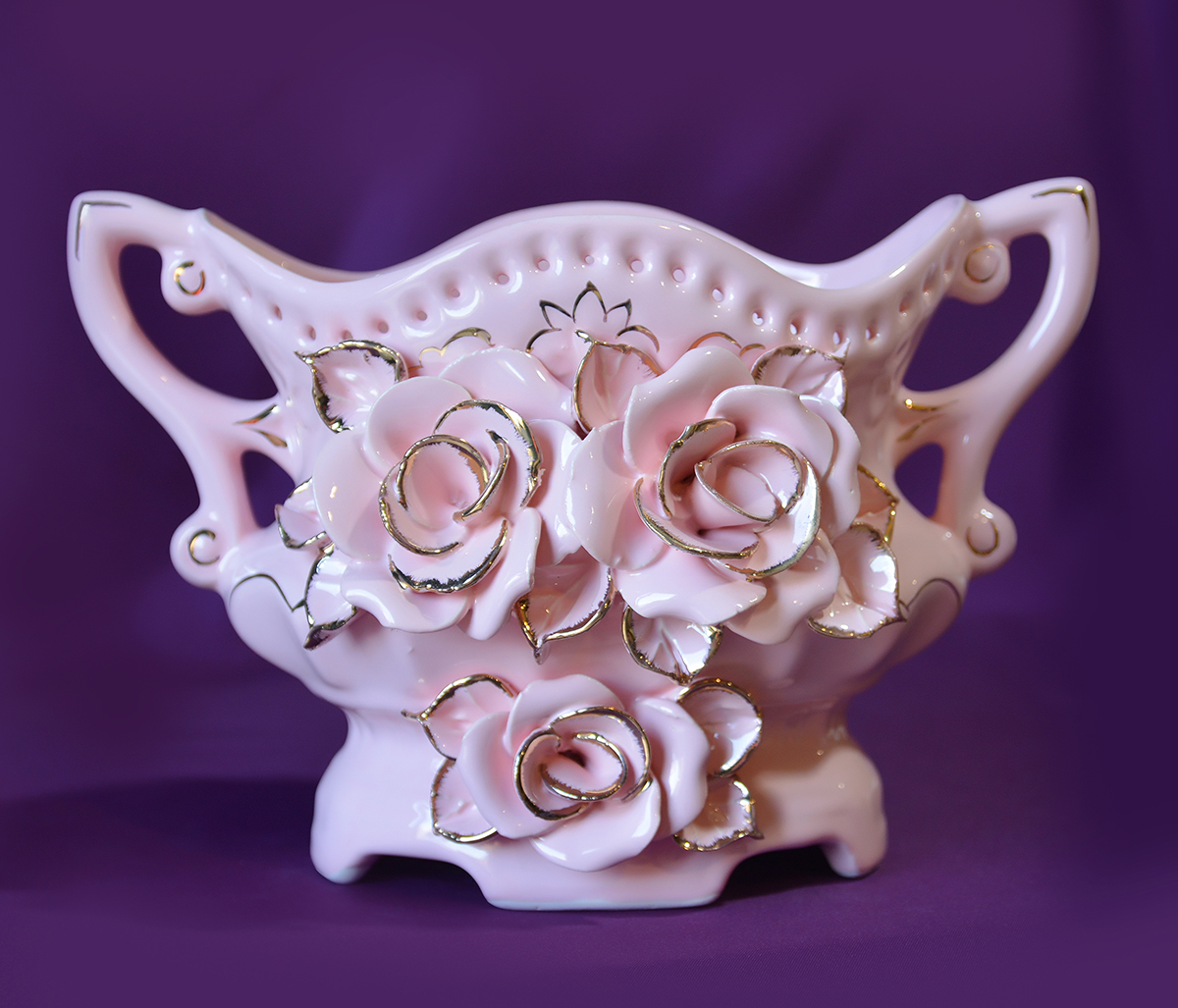 Конфетница Амурчик розовый (декор заменителем золота)