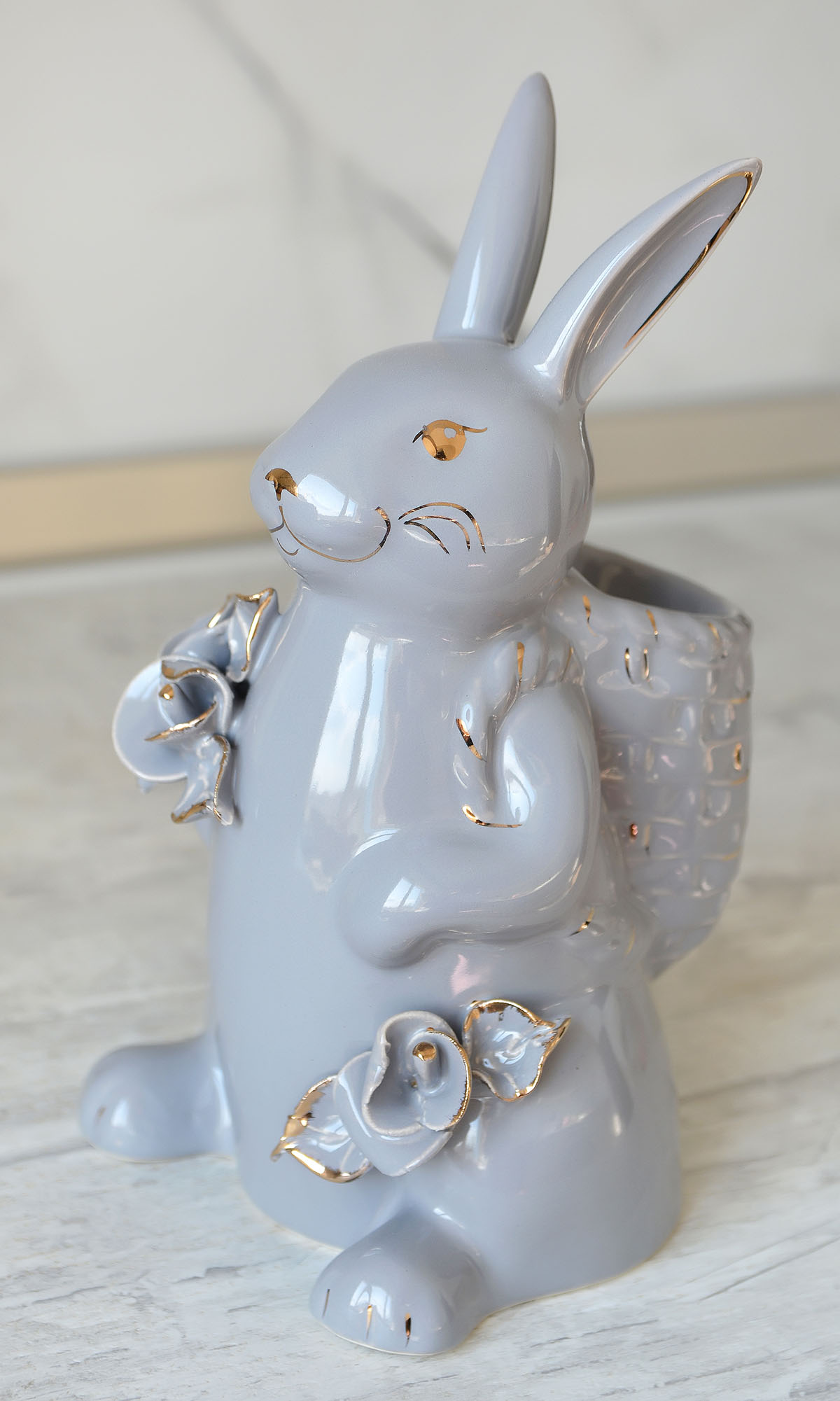 Кролик с корзинкой серый