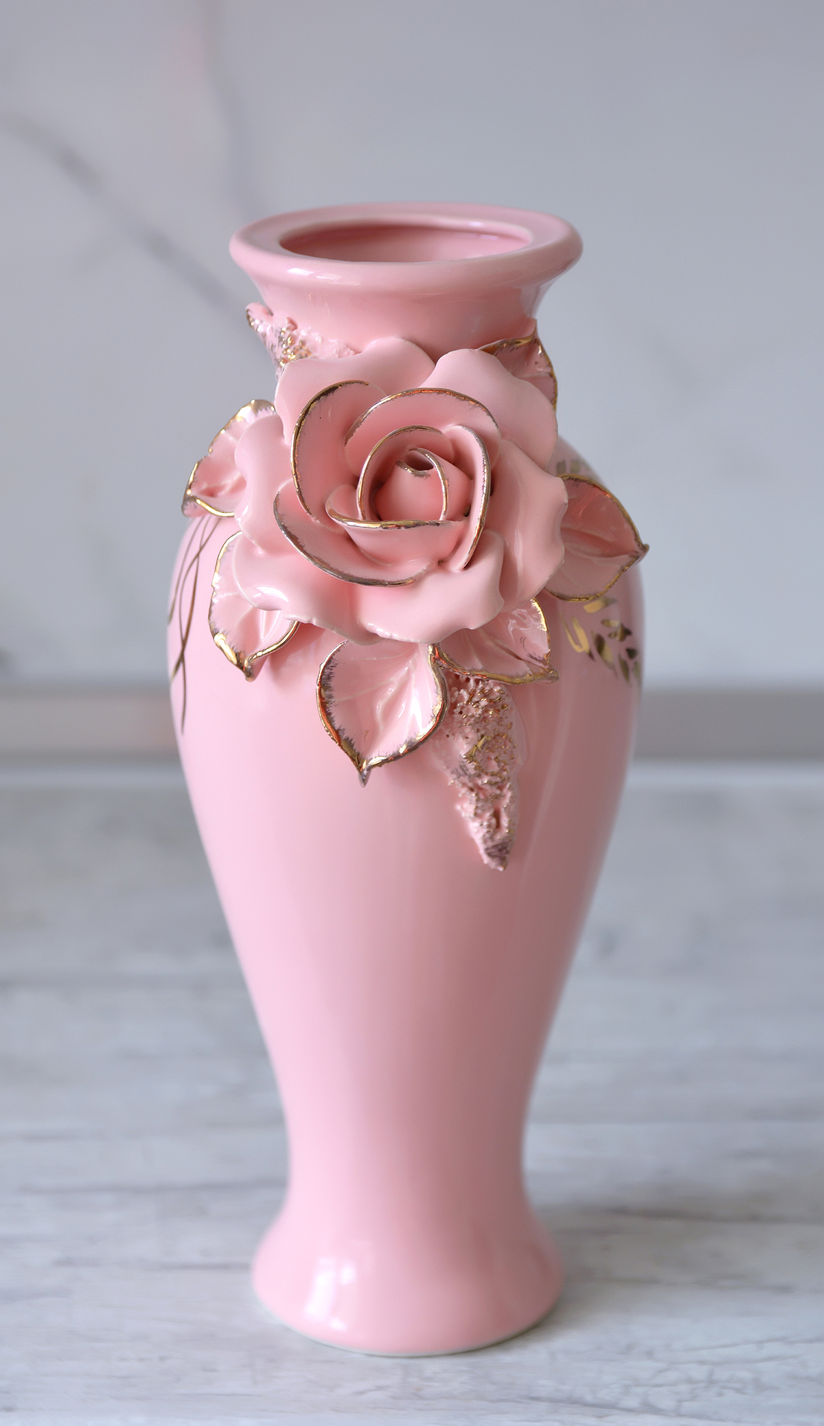 Ваза Кокетка лепка розовая (декор заменителем золота)