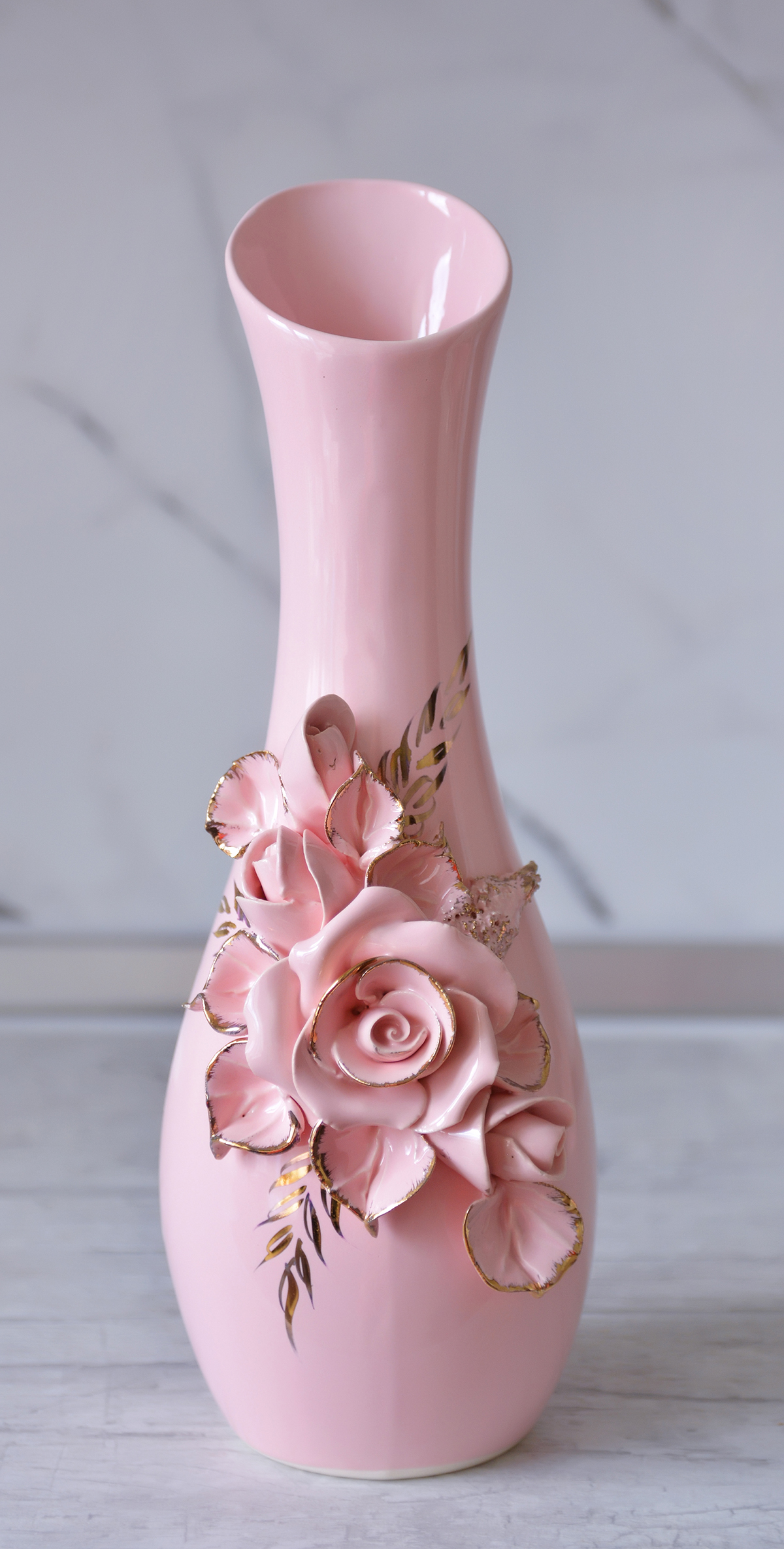 Ваза Лола розовая (декор заменителем золота)